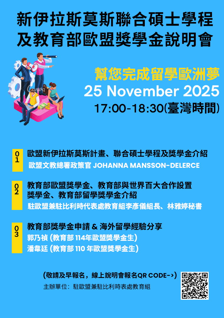 「新伊拉斯莫斯聯合碩士學程及教育部相關獎學金線上說明會」活動公告