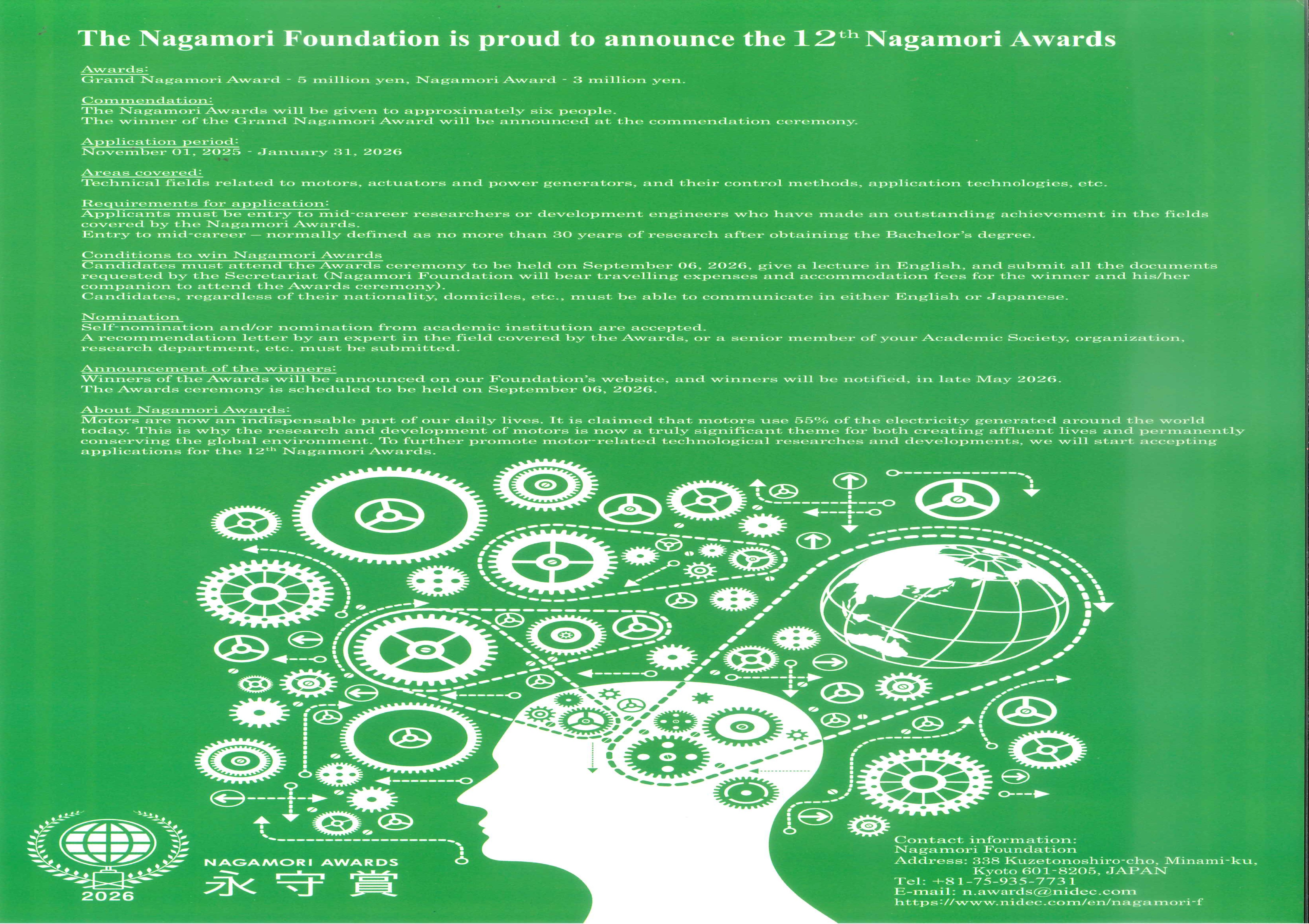 三、「第12屆永守賞」自即日起至明(115)年1月31日止接受報名,有關報名資格、論文格式及獎項等細節請參閱附件之徵稿簡章及官網(www.nidec.com/en/nagamori-f)。