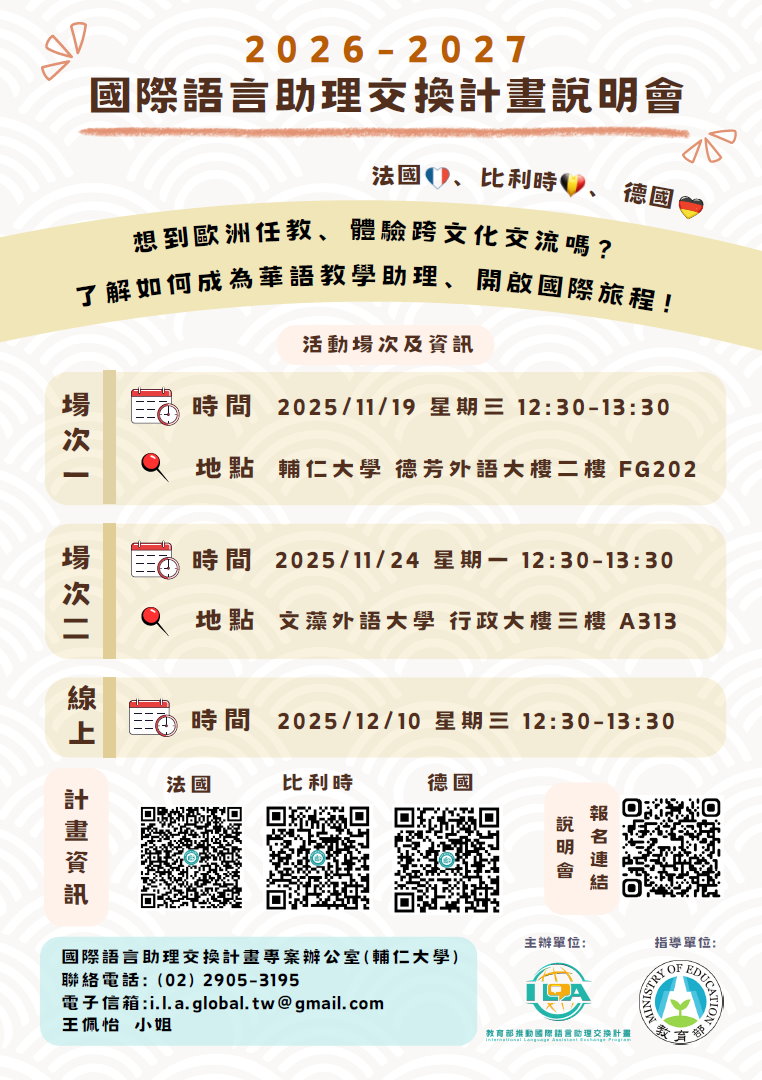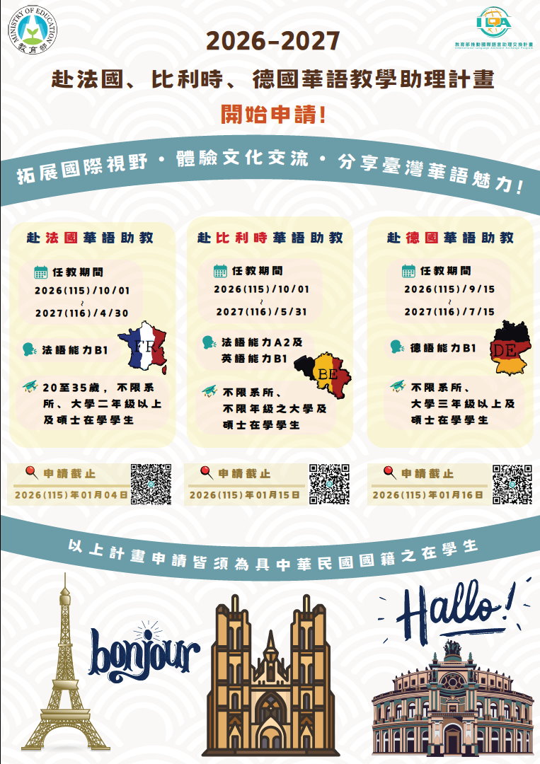 「2026-2027國際語言助理交換計畫線上說明會」活動公告