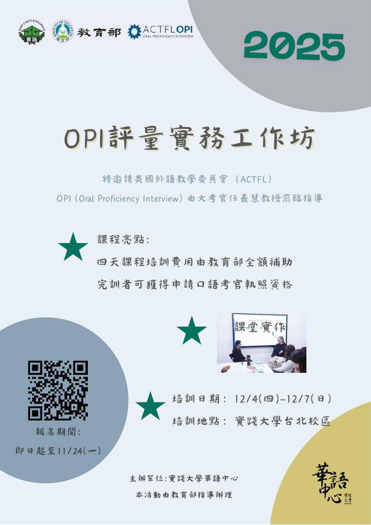 一、活動目的:提升華語教師之專業成長及教學品質,並增進未來取得口語測試考官資格之知能。